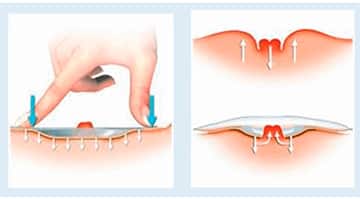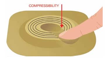 Flexibilidade compete a facilidade com que a base adesiva pode ser dobrada usando os dedos polegar e indicador para flexionar, formando uma meia lua. Construção pode ser Integrada ou Customizada.