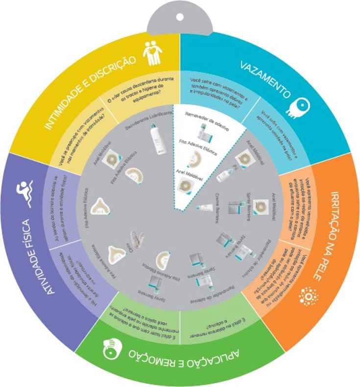 Para auxiliar na escolha da melhor solução para cada problema, a Coloplast criou a Roda de Soluções Brava®. Nessa ferramenta você encontra as cinco categorias abaixo que abrangem um total de 10 problemas identificados.