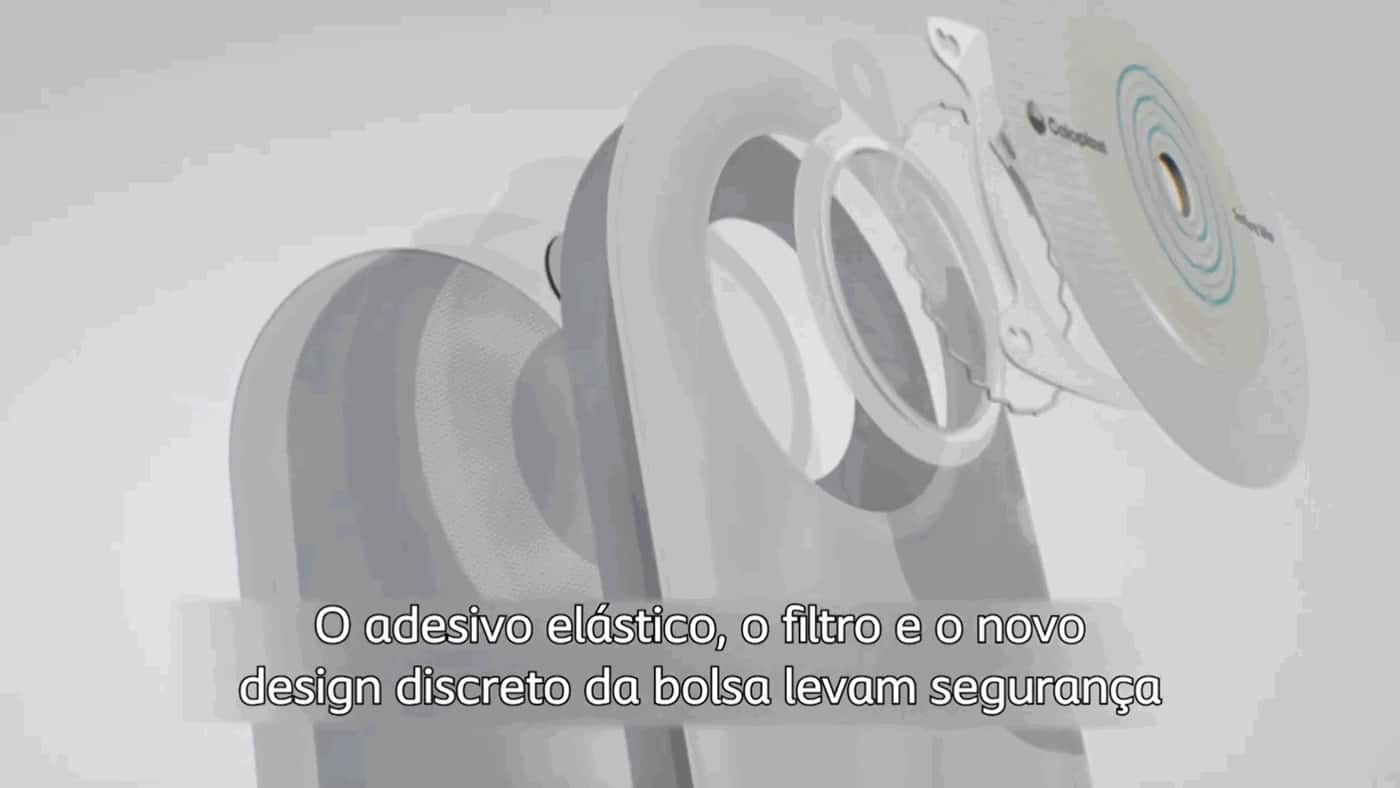 - Pré-filtro que previne entupimento; – Característica única da Coloplast!
